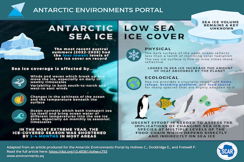 A summary and infographic on the physical role of sea ice in Antarctica.