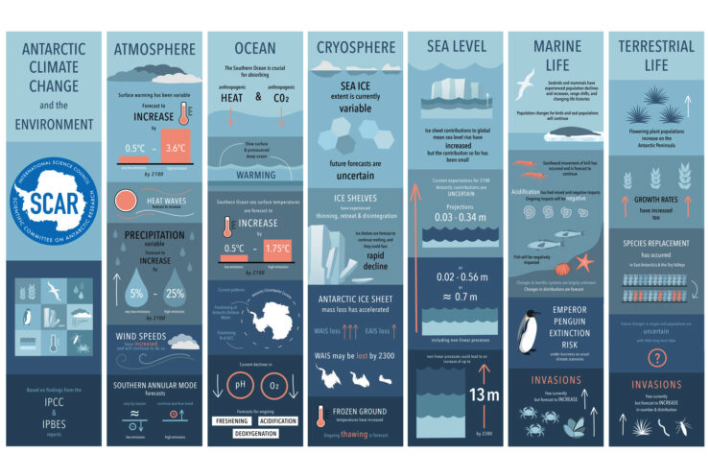 A summary and infographic on the future projections of sea ice in Antarctica.